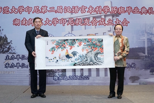 (通讯员 曾丽娟)12月22日,我校第二届印尼华文教师汉语言本科学历班毕业典礼暨印尼校友会成立大会在雅加达举行。黎大志副校长率团亲赴印尼参加典礼,印尼有关华文教育协调机构负责人,中国暨南大学、华侨大学等印尼校友会代表,印尼多家媒体代表,湖南师范大学国际汉语学院印尼硕士学历班讲学团教师,硕士学历班学员,本科学历班毕业学员及家长团等约300人出席典礼。